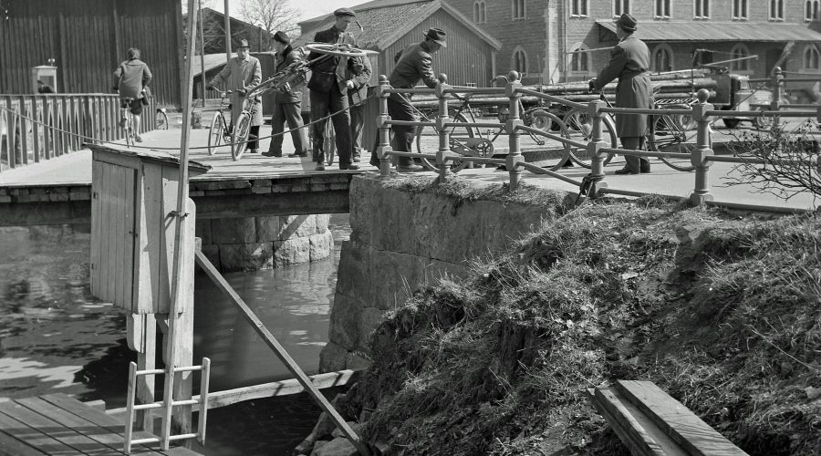 Med start i Östra Bergen följer vi motiv från 1950‑talets Nyköping — verksamhet i hamnområdet, kungabesök, kanotliv, midsommarfirande vid Tjuvholmsberget och mycket mer.